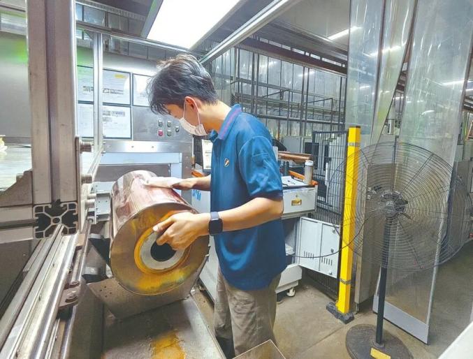 圖為在運城制版集團的生產(chǎn)車間內(nèi),工作人員正在檢查鍍銅后的版輥。