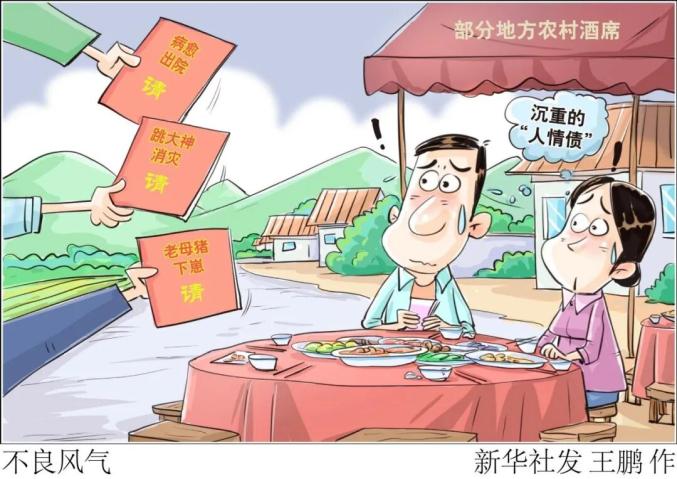 芝麻大的小事都要大張旗鼓地操辦,再平常不過的家事也要讓左鄰右舍送禮。在頻繁的人情往來中,禮金和“份子錢”成了沉重的負(fù)擔(dān),讓原本淳樸的鄉(xiāng)風(fēng)民俗變了味,也與勤儉節(jié)約的社會風(fēng)尚背道而馳。