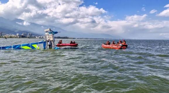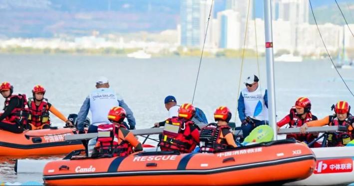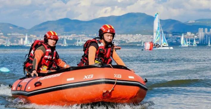 洱海湖面上,14艘救援艇以特定隊形分布在賽區(qū)周邊。每艘艇上,1名駕駛員和2名救生員時刻注視著水面情況。他們說:“我們要像影子一樣跟著比賽,既不能影響比賽,又要隨時準備出手。”