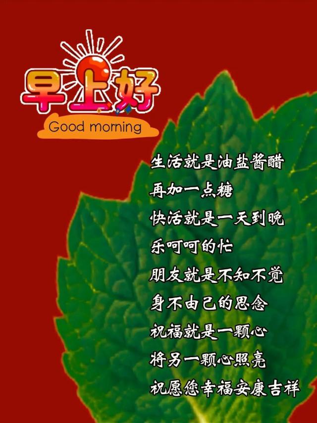 早上好,清晨是希望的開端,是生活的啟航。好心態(tài)是快樂的源泉,好身體是人生的本錢。愿我們每天都陽光燦爛,一生健康平安。