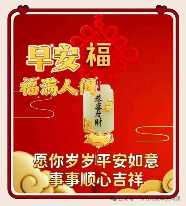 早上好!讓陽光溫暖你的心房,讓清風輕拂你的面龐,愿你的早晨滿是美好與喜悅。祝你心想事成,一切順遂,在每個清晨綻放幸福!用溫暖的手握住修來的緣,用誠摯的心守住友誼的情,借無線的網(wǎng)絡送上深深祝福:開心快樂!