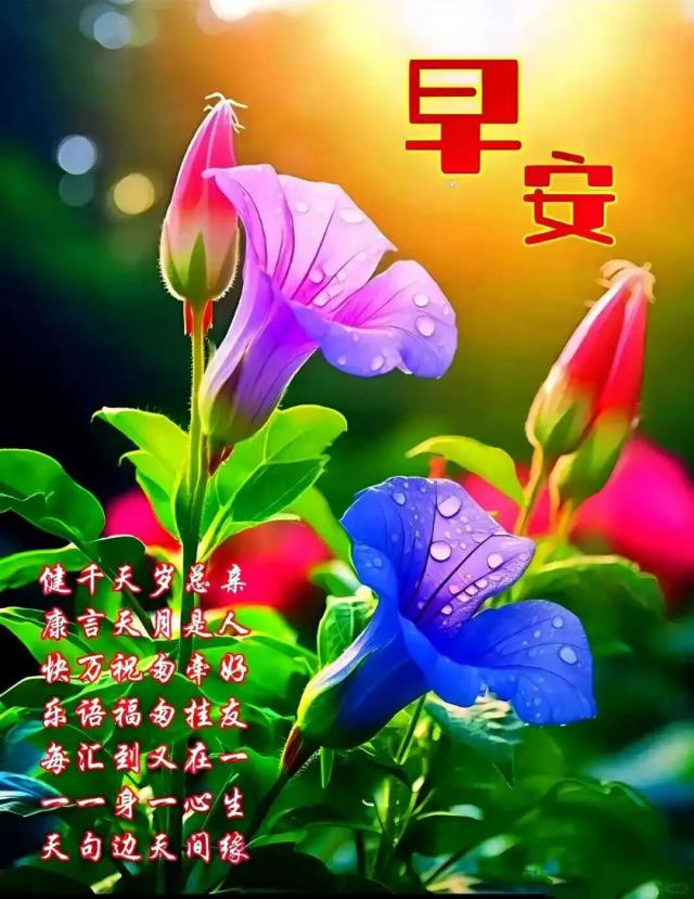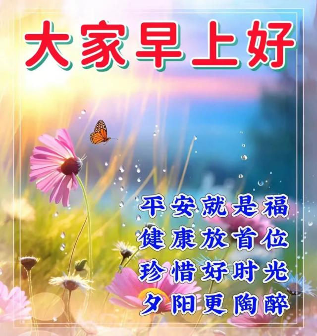 清晨短信一連線,如同彼此見了面。品味人生幾十年,有苦有累也有甜,風華正茂成過往,如今健康最值錢,善待自己多保重,平安快樂每一天!早上好!