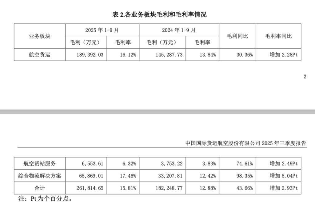 國貨航三季度業(yè)績再度刷新紀(jì)錄,三大業(yè)務(wù)板塊毛利率均實(shí)現(xiàn)同比增長。