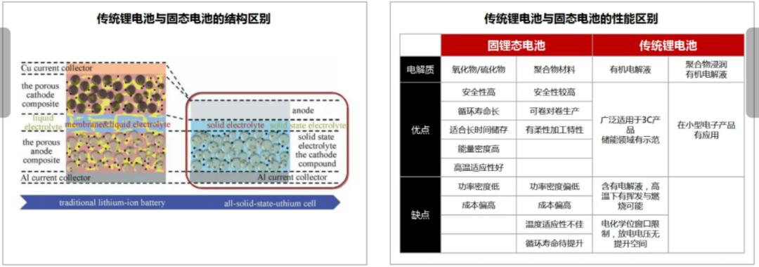 已批量上車的鋰電池(液態(tài)電池)與固態(tài)電池在結(jié)構(gòu)、性能上本質(zhì)不同,導(dǎo)致兩者在安全性、續(xù)航能力上差距顯著。