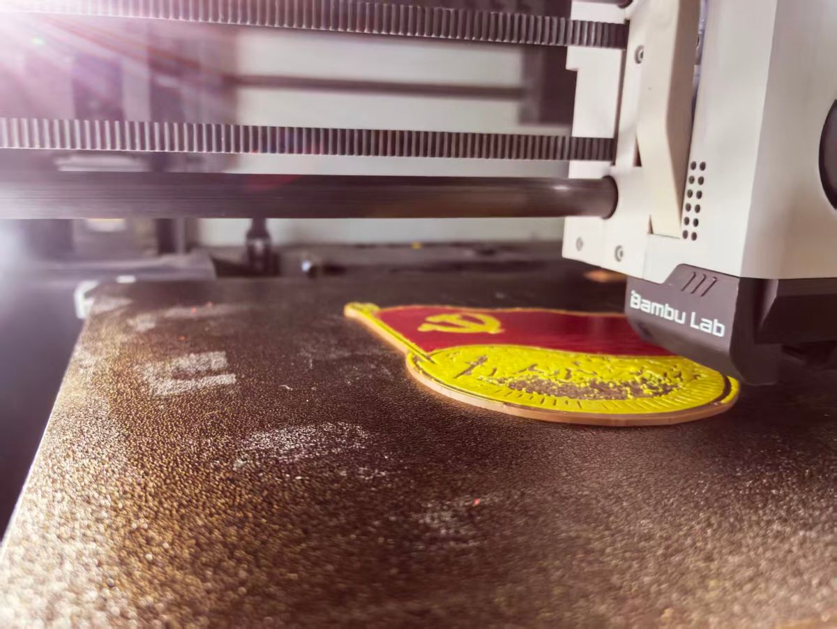 夕陽給小店鍍上金邊,打印機正打出一枚黨徽書簽。紋路由“為人民服務(wù)”繁體字組成,背面刻著“走好新時代長征路”。孫偉輕輕拂去細(xì)屑:“從指南車到‘中國芯’,變的只是工具,不變的是中國人造物創(chuàng)世的匠心。”