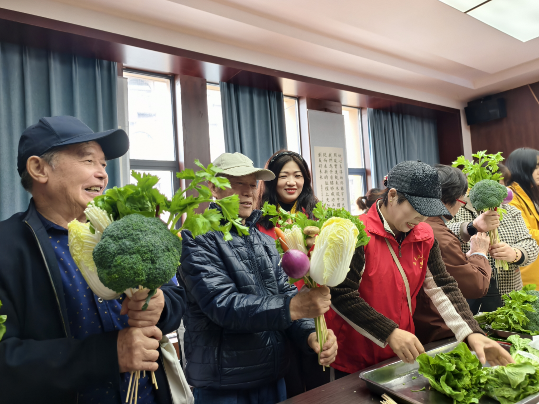 在志愿者的細(xì)心引導(dǎo)下,居民們分組動(dòng)手制作。大家充分發(fā)揮想象力,把玉米、胡蘿卜、青菜、紅辣椒等食材巧妙地組合在一起,讓普通的蔬菜搖身一變成為“可食用的藝術(shù)品”。現(xiàn)場(chǎng)歡聲笑語(yǔ)不斷,居民們相互幫助。僅僅一個(gè)小時(shí),一束束獨(dú)一無(wú)二的作品就在大家的巧手下誕生了,居民們自豪地捧著花合影,成就感滿(mǎn)滿(mǎn)。這次活動(dòng)不僅鍛煉了居民的動(dòng)手能力,還增進(jìn)了鄰里之間的情誼,讓“煙火氣”與藝術(shù)感完美融合。