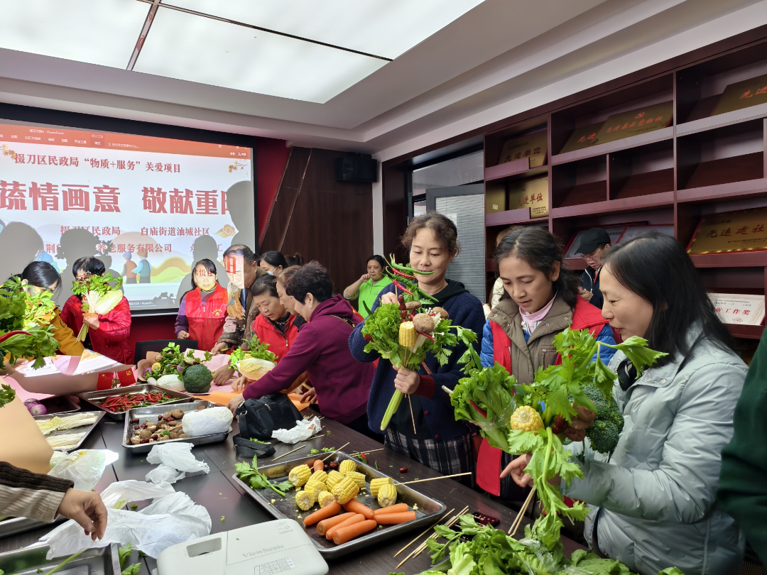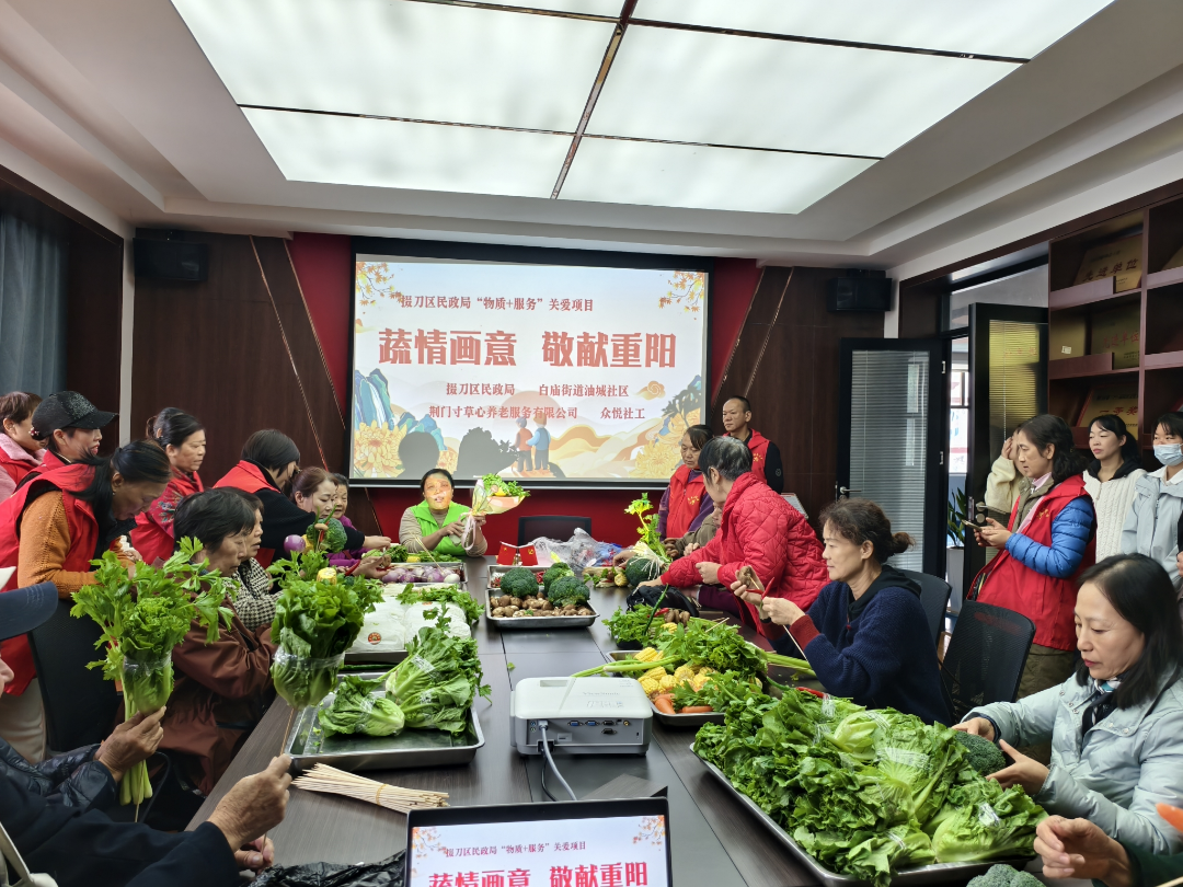 在重陽(yáng)節(jié)即將到來(lái)之時(shí),為了弘揚(yáng)尊老愛(ài)老的傳統(tǒng)美德,2025年10月27日上午,荊門(mén)市白廟街道油城社區(qū)攜手掇刀區(qū)民政局、荊門(mén)寸草心養(yǎng)老有限公司,在黨群服務(wù)中心舉辦了一場(chǎng)獨(dú)具特色的“蔬情畫(huà)意 敬獻(xiàn)重陽(yáng)”主題活動(dòng)。此次活動(dòng)借助果蔬花束的制作與贈(zèng)送,激發(fā)居民的創(chuàng)意靈感,同時(shí)把溫暖傳遞給轄區(qū)內(nèi)的特殊群體,像獨(dú)居老人、困難家庭等?;顒?dòng)現(xiàn)場(chǎng)氣氛溫馨且熱烈,有50余名居民參與其中,他們親手制作出60余束精美的花束,讓這個(gè)節(jié)日在煙火氣中散發(fā)出別樣的光彩。