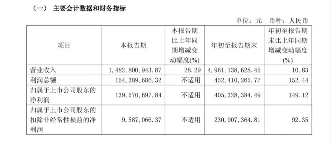 報告顯示,前三季度公司營業(yè)收入49.61億元,同比增長10.8%;凈利潤4.05億元,同比增長149.1%;扣非凈利潤2.31億元,同比增長92.4%。