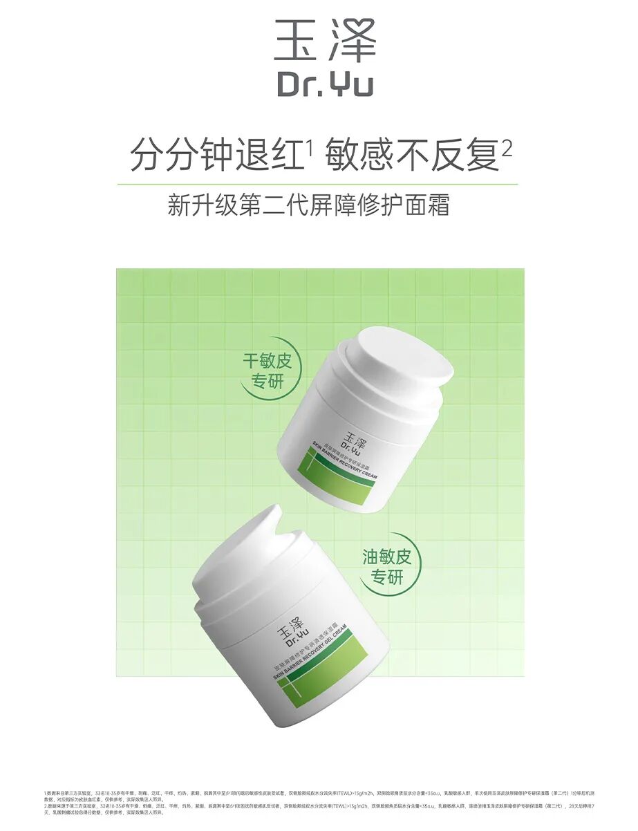 首先做出改變的是公司第一大主品牌玉澤。2025年年初,玉澤依托上海家化集團(tuán)科技底盤,進(jìn)行“科技、成分、產(chǎn)品、視覺”四大維度的全面升級:將視覺主色調(diào)改為“安心綠”,傳遞安全、專業(yè)的醫(yī)學(xué)基因;科技和成分上,PBS屏障自生技術(shù)迭代至3.0版本,并聯(lián)合中國中醫(yī)科學(xué)院中藥研究所創(chuàng)新應(yīng)用青蒿提取物;產(chǎn)品從修護(hù)拓展到全場景防護(hù)。