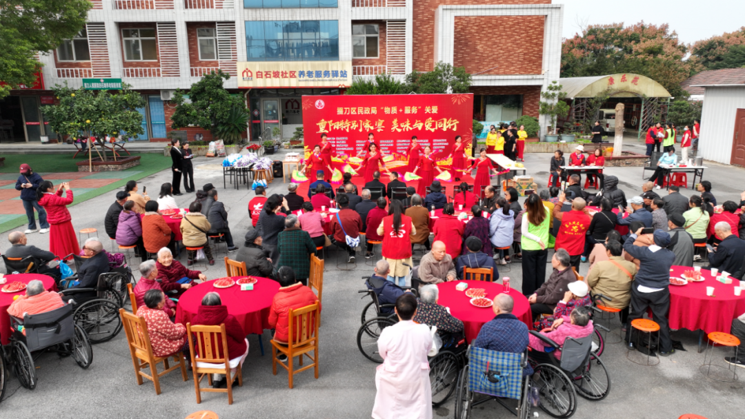 重陽(yáng)佳節(jié)臨近,10月27日,荊門市掇刀區(qū)民政局在掇刀石街道白石坡養(yǎng)老院舉辦了“重陽(yáng)特別家宴·美味與愛同行”長(zhǎng)壽宴活動(dòng)。荊門市女企業(yè)家協(xié)會(huì)會(huì)員、愛心企業(yè)代表、白石坡社區(qū)工作人員、眾悅社工、愛心志愿者與養(yǎng)老院90多位長(zhǎng)者齊聚一堂,共同慶祝重陽(yáng)節(jié)。