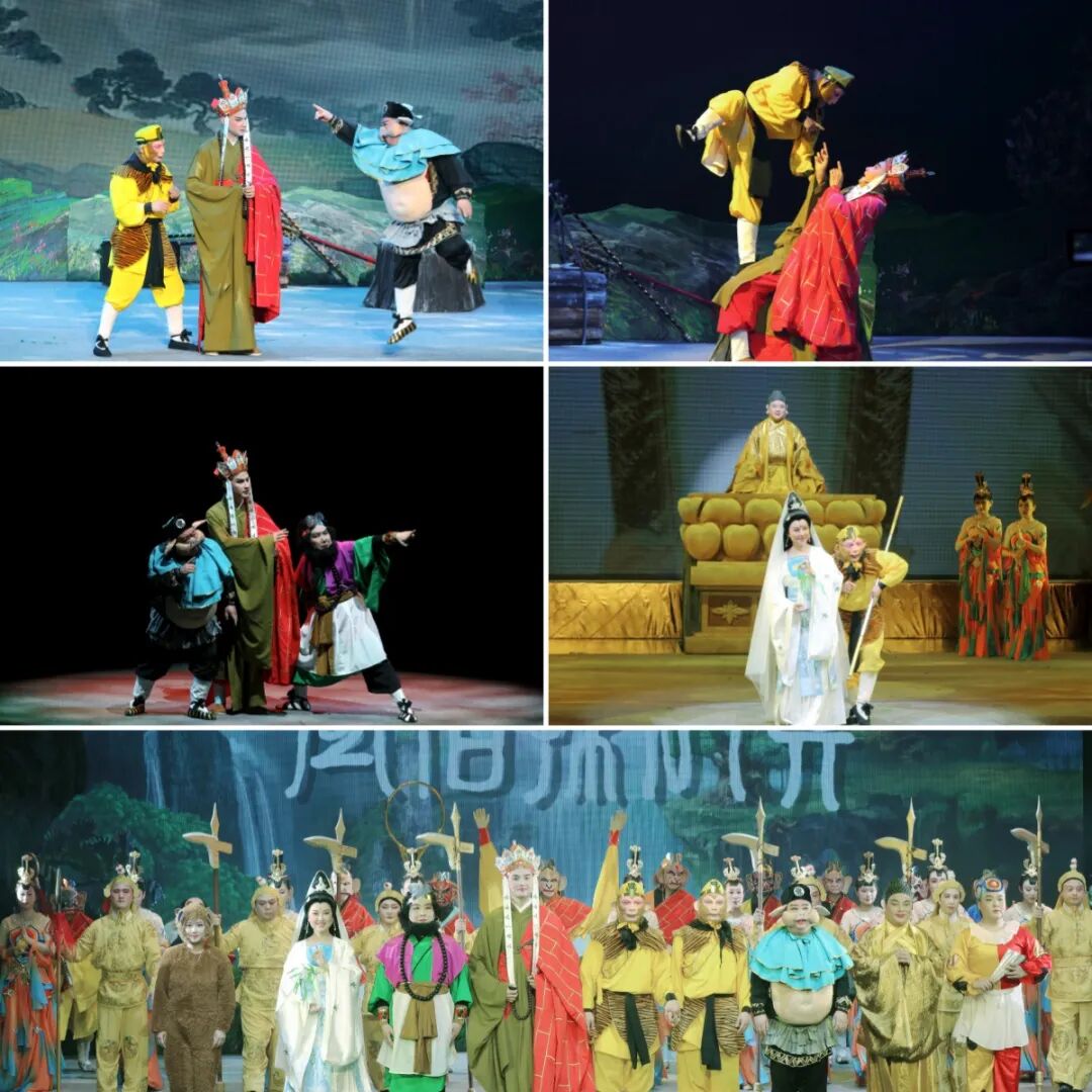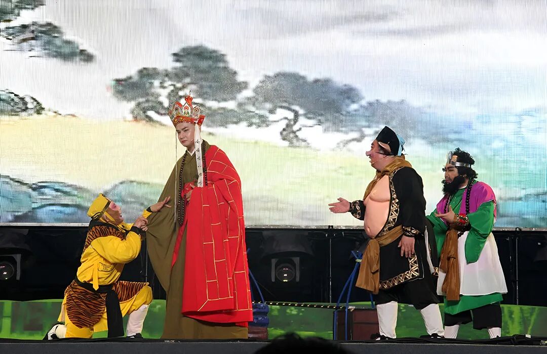 這部大戲用八幕劇情重新演繹經(jīng)典。從花果山熱鬧開場,到唐僧錯(cuò)逐悟空的揪心情節(jié),再到雷音寺辨真?zhèn)蔚母叱辈糠?,每一幕都充滿驚喜。吉?jiǎng)√厣?,手絹功、扇子舞與關(guān)東戲曲配樂相互融合,盡顯東北文化底蘊(yùn);科技為舞臺(tái)賦能,LED屏與實(shí)景相結(jié)合,觀音菩薩仿佛騰云駕霧而來,讓人瞬間穿越到西游世界;親子互動(dòng)環(huán)節(jié)豐富,小沙彌會(huì)在現(xiàn)場提問,還會(huì)帶領(lǐng)小朋友唱 “挖呀挖”,讓劇場秒變歡樂課堂。