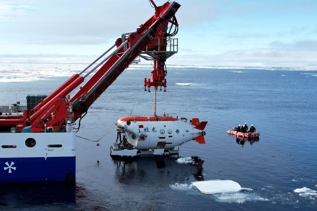 今年7月22日,搭載著‘奮斗者’號載人深潛科考隊的‘探索三號’從三亞出發(fā),會同‘蛟龍’號載人深潛團隊赴北冰洋海域執(zhí)行深潛任務??瓶缄犜诒北笞鳂I(yè)56天,開展了一系列科學考察和試驗。在海冰覆蓋率大于80%的北冰洋中央海盆,科考隊進行了國際上首次加克洋中脊的載人深潛科考,最大下潛深度達5277米。