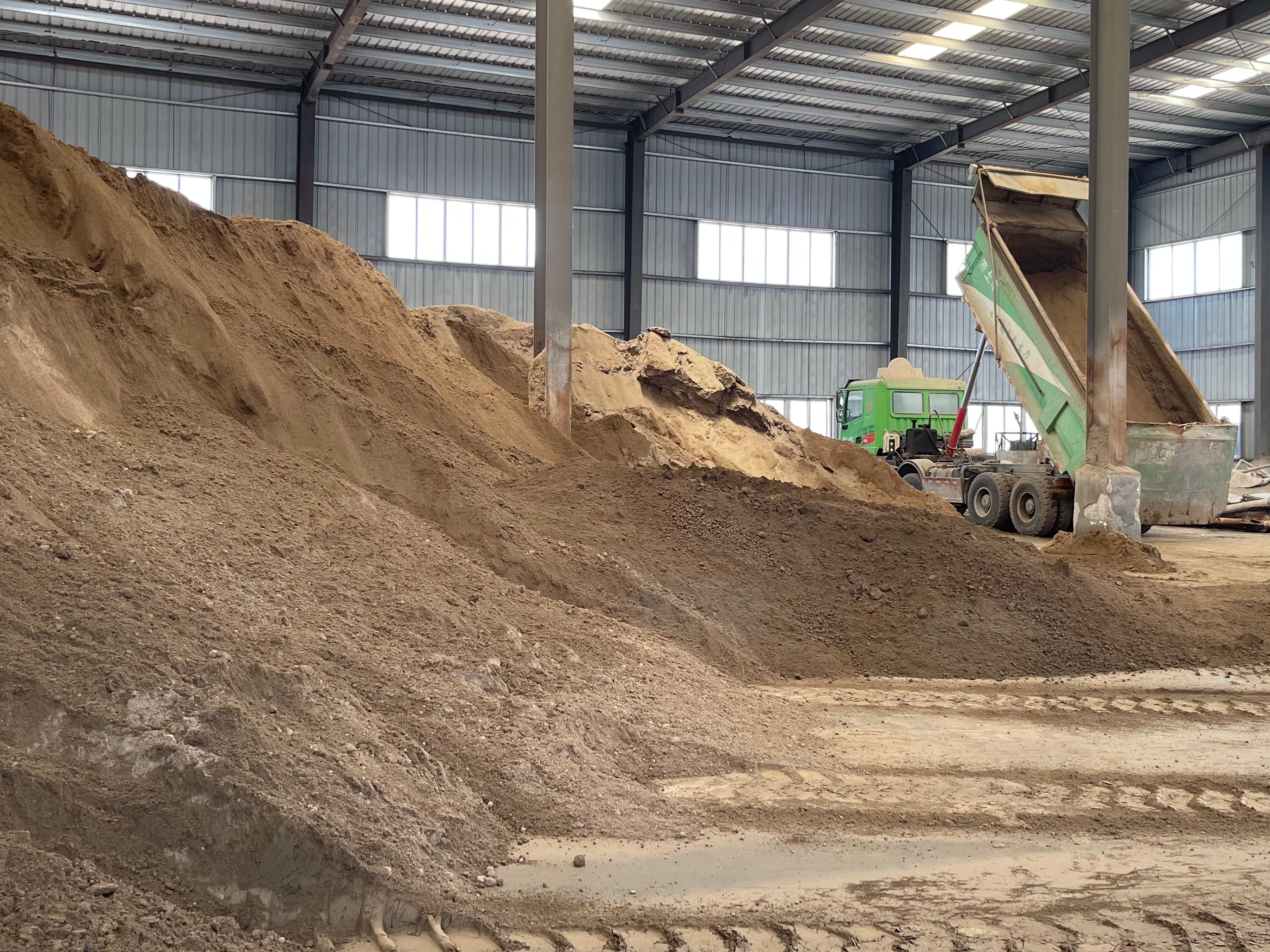 澤隆新環(huán)??萍加邢薰疽粡S房內(nèi)堆滿了生物灰濕料。