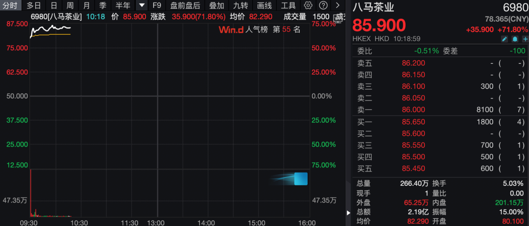 港股八馬茶業(yè)上市首日一度漲超70%,最新報(bào)85.9港元/股。招股書顯示,八馬茶業(yè)產(chǎn)品全面覆蓋中國六大品類茶葉以及茶具、茶食等非茶葉產(chǎn)品。截至2024年底,該公司擁有超3500家線下連鎖專賣店。