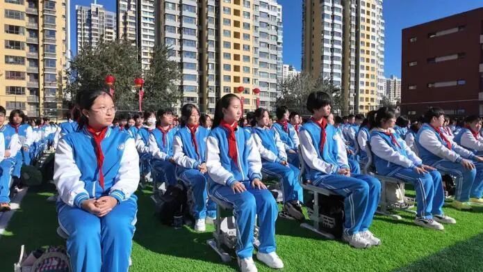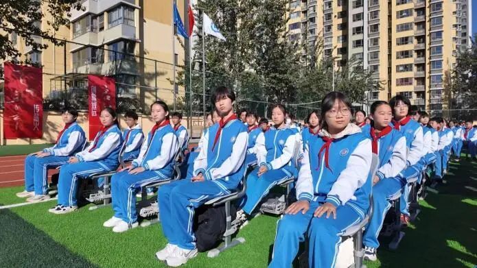 9時30分,興學紀念大會在體育場正式拉開帷幕。大會在莊嚴的升國旗、唱國歌儀式中開啟,隨后校旗高高揚起,校歌在全場回蕩,喚起了全體九中人的集體記憶。