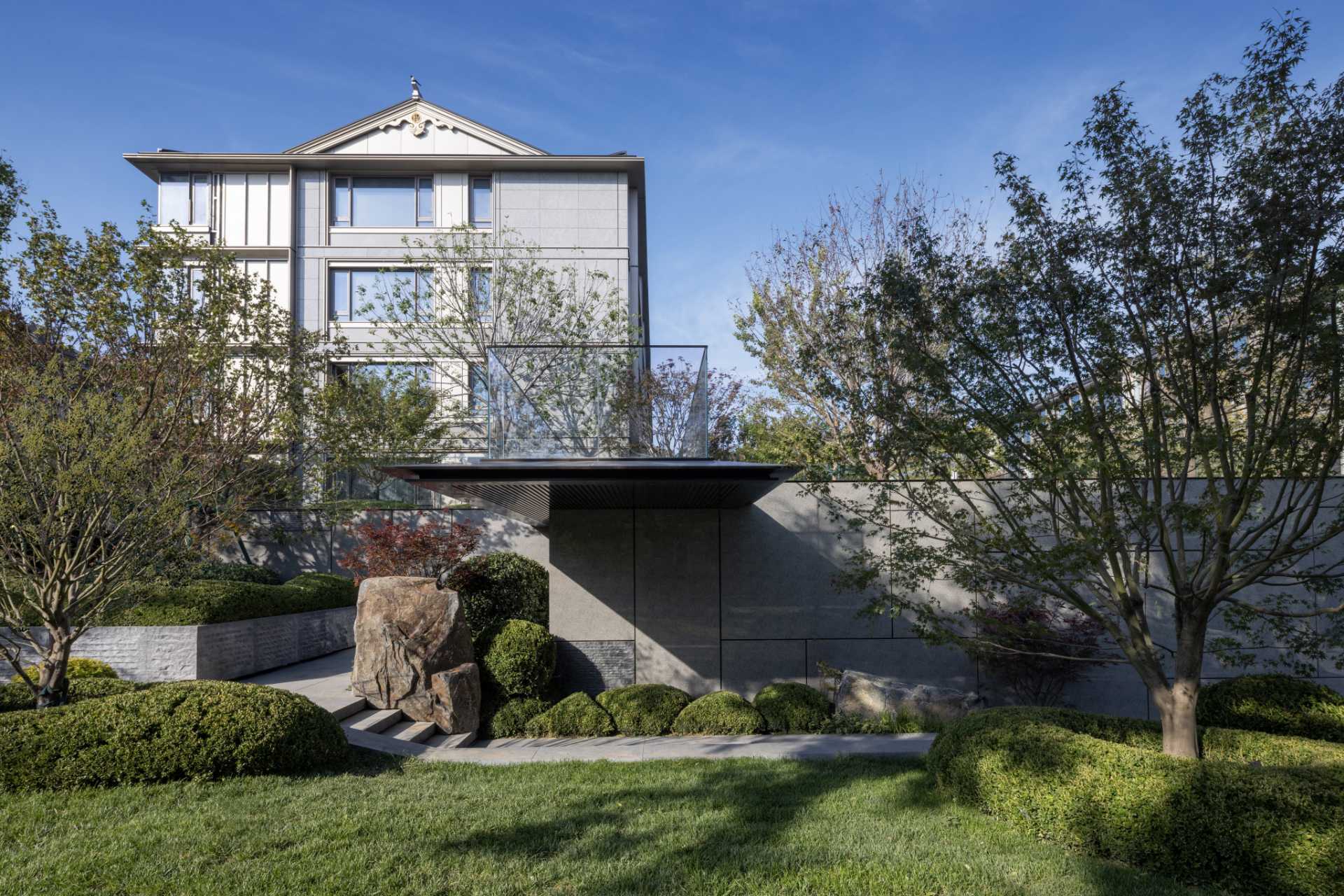 建筑的精細建造體現(xiàn)在每一處細節(jié)中。從建筑立面的流暢線條、精密的三縫合一工藝,到嚴選石材的細膩紋理和整體鋪裝的大板,都展現(xiàn)了“不為炫耀,只為打造一座能經(jīng)得起時間考驗、并與之和諧共處的傳家宅院”的匠心。