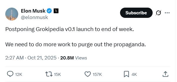 這場以“去偏見”為名的嘗試,最終變成了用一種敘事偏見替代另一種偏見的游戲。在馬斯克構(gòu)建的媒體生態(tài)中,Grokipedia找到了自己的定位,但離“客觀中立”的目標越來越遠。