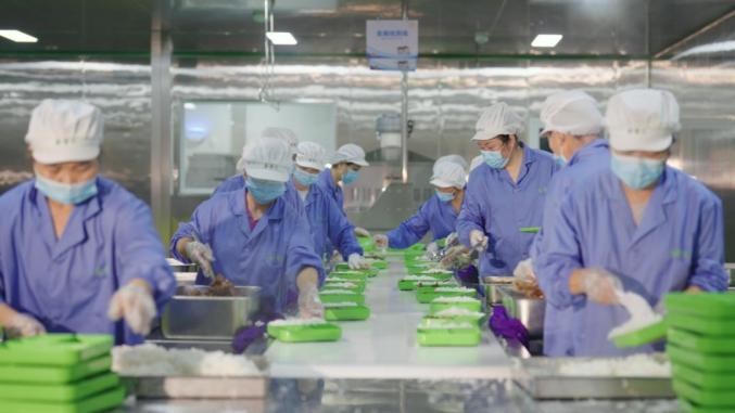 清晨6點(diǎn),奉賢區(qū)金匯鎮(zhèn)光善路50號的“金食匯”中央廚房已是一片繁忙景象。剛從田間運(yùn)來的新鮮蔬菜,在水流的沖洗下,顯得格外鮮亮,靜靜等待著被制作成美味佳肴。
