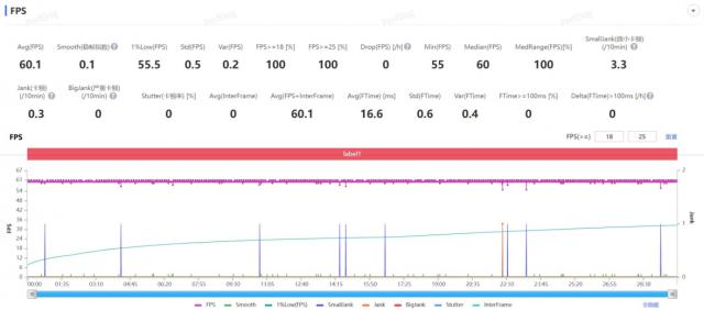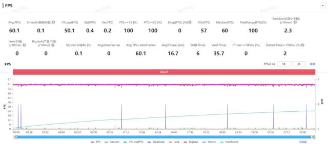 在祖?zhèn)鳌对瘛方浀漤殢洺侨弋嬞|下跑圖 30 分鐘,數毛分辨率約 860P 左右,PerfDog 顯示平均幀率 60 幀滿幀,機身背面最高溫度 41.5 度,平均功耗只有 3.9W。