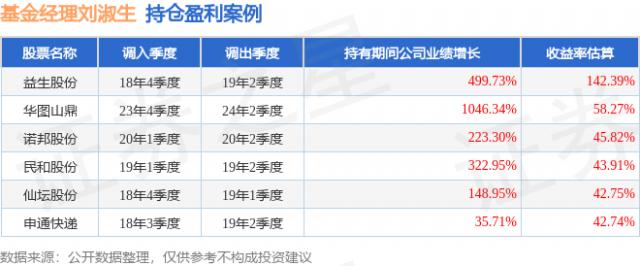 劉淑生管理的匯豐晉信2026周期混合基金于2018年4季度買入益生股份,持有2個(gè)季度后,在2019年2季度賣出。持有期間估算收益率為142.39%,2018 - 2019年年報(bào)歸屬凈利潤增幅達(dá)499.73%。