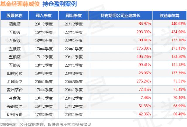 以下為韓威俊所任職基金的部分重倉(cāng)股調(diào)倉(cāng)案例: