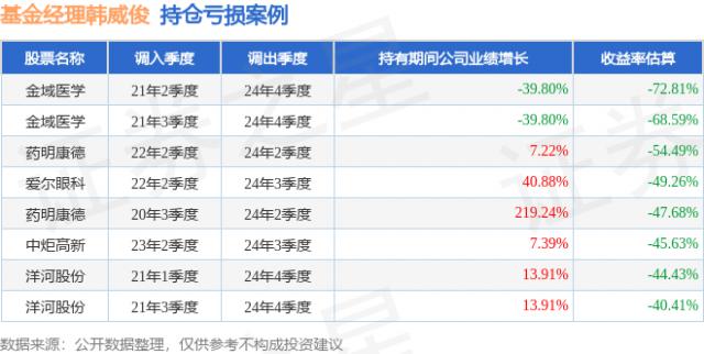 韓威俊管理的交銀股息優(yōu)化混合基金在2021年2季度買(mǎi)入金域醫(yī)學(xué),持有3年又2個(gè)季度后,在2024年4季度賣(mài)出。持有期間的估算收益率為 -72.81%,2021年到2024年金域醫(yī)學(xué)的年報(bào)營(yíng)業(yè)總收入降幅為39.8%。