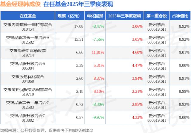2025年三季度韓威俊表現(xiàn):交銀消費(fèi)新驅(qū)動(dòng)股票基金季度漲幅4.6%