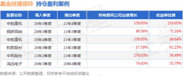 鄭玲管理的中郵軍民融合靈活配置混合A基金于2020年3季度買入中航重機(jī),持有1年又1個(gè)季度后,在2021年4季度賣出。持有期間的估算收益率為219.05%,2020年到2021年中航重機(jī)的年報(bào)歸屬凈利潤(rùn)增幅達(dá)159.05%。