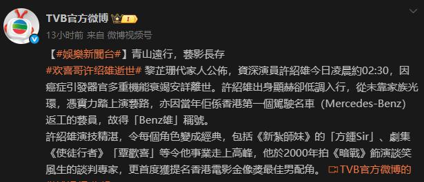 從“Benz雄”到“歡喜哥”,許紹雄的人生謝幕了,但他超過50年演藝生涯留下的故事不會褪色。
