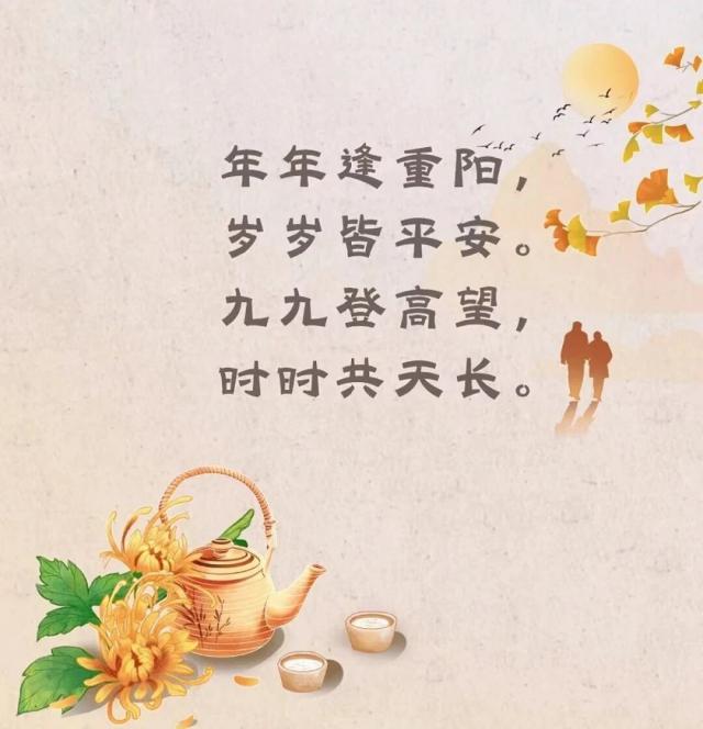 重陽已到,去登高,登就登個步步高;菊花開了,開就開個樣樣紅;雁南飛時,飛就飛個事事旺;寄去思念,念就念個天天好;送上祝福,送就送個滿滿福!