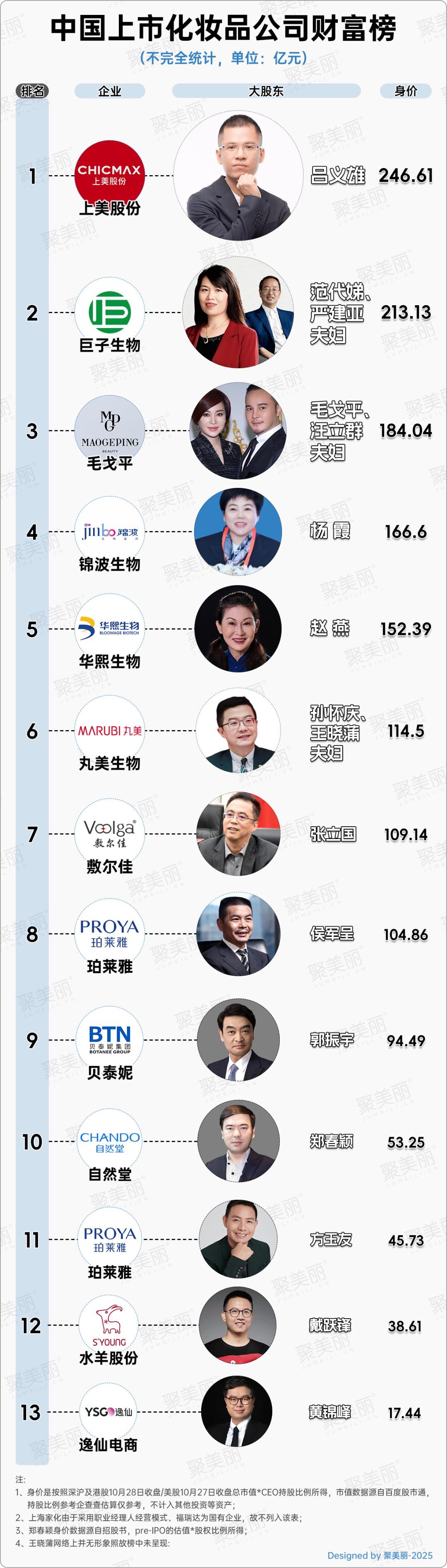另外,自然堂因尚在港股上市進程中,故身價暫按Pre - IPO估值及股權(quán)比例計算,如成功上市則大概率會迎來身價暴漲。