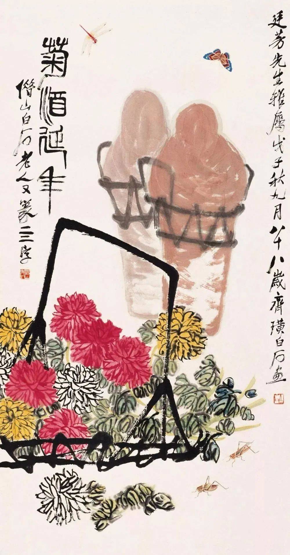 《菊酒延年圖》近代 齊白石