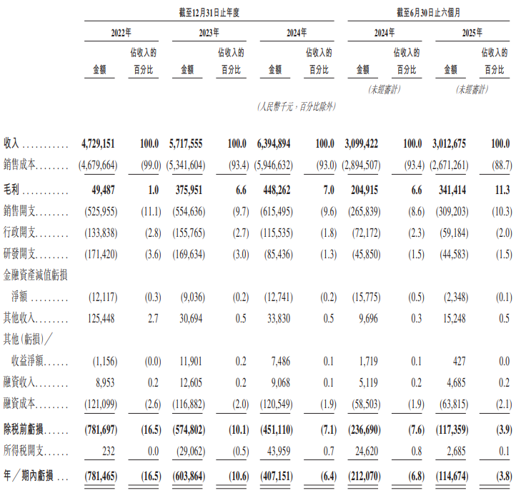 公司毛利率從2022年的1.0%穩(wěn)步升至2023年的6.6%,2024年達7.0%;從2024年上半年的6.6%升至2025年上半年的11.3%。