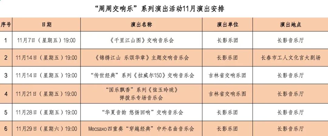 初寒降臨,音樂之城長春的“周周交響樂”系列演出依舊熱度高漲。11月,長影樂團與吉林省交響樂團攜手帶來六場風格多樣的音樂盛宴,為初冬增添溫暖。