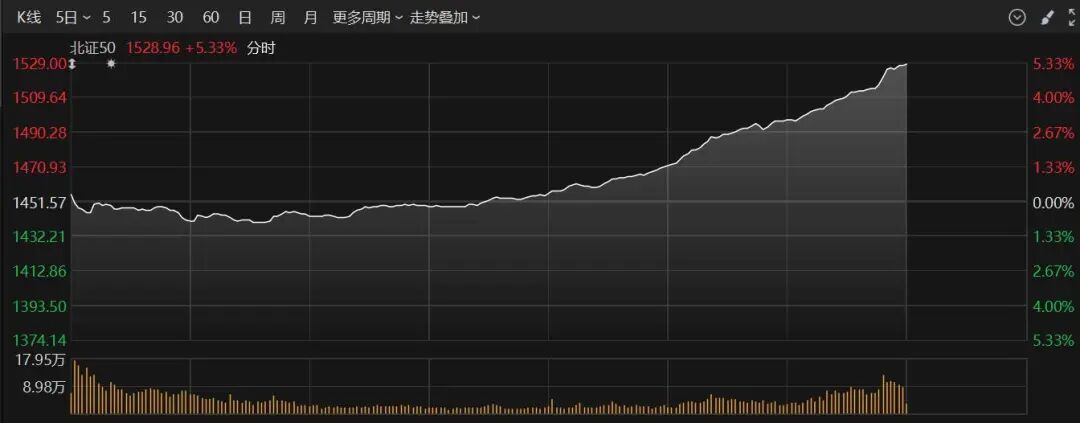 午后A股市場(chǎng)行情走高。截至發(fā)稿時(shí),創(chuàng)業(yè)板指漲幅超過(guò)2%,滬指上漲0.5%,深證成指漲幅逾1.5%,北證50指數(shù)漲幅超5%。