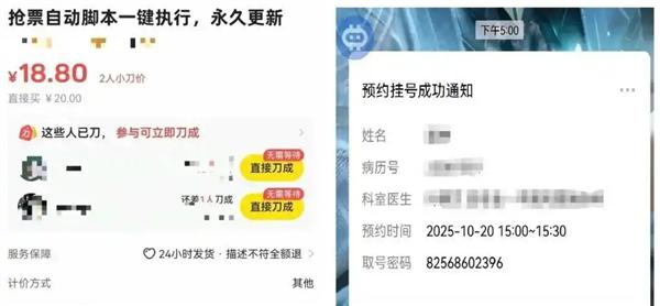 調(diào)查顯示,今年6月起,其中一名嫌疑人自主開發(fā)了針對“大麥”“貓眼”“紛玩島”等票務(wù)平臺的搶票腳本,還能根據(jù)用戶需求定制醫(yī)院掛號、場館預(yù)約等特殊功能的腳本。