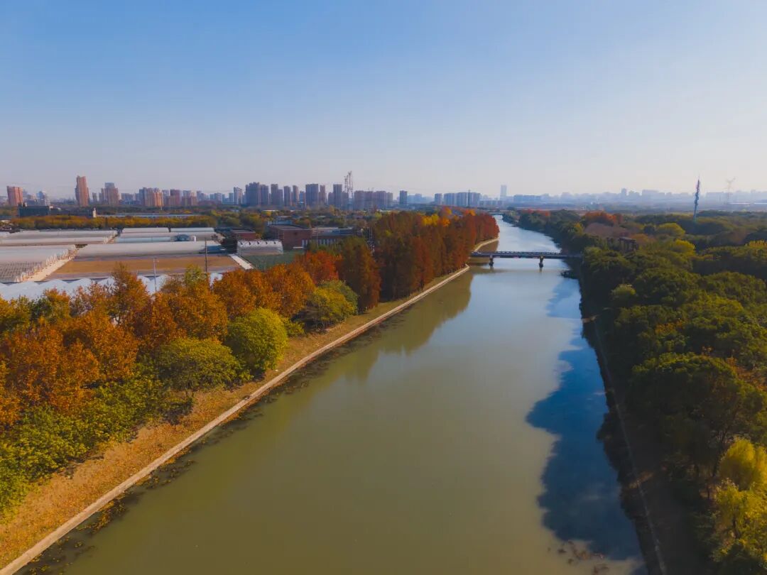 公園1號(hào)門前,近500米長(zhǎng)的杉林已褪去夏日的翠色,換上了金黃、橙紅與深棕交織的暖色調(diào)外衣。這片連綿的彩色樹(shù)林與旁邊靜靜流淌的河道相互映襯,斑斕的樹(shù)影倒映在水中,構(gòu)成了一幅視野開(kāi)闊、意境寧?kù)o的初冬長(zhǎng)卷。