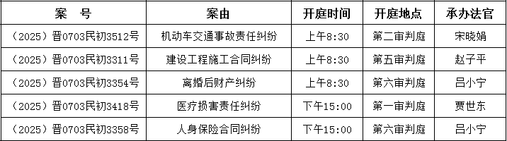 太谷法院2025年12月8日至12月12日開庭公告
