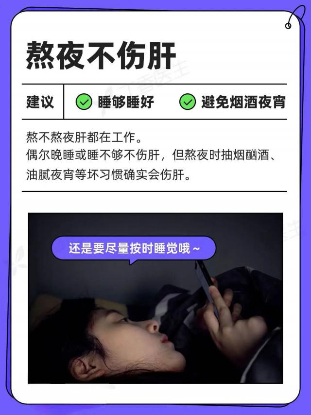 ? 單純的晚睡對(duì)肝臟沒有直接傷害,真正傷肝的是熬夜時(shí)吃的油膩夜宵、煙酒燒烤等行為,以及作息不規(guī)律、睡眠不足或睡眠質(zhì)量差。睡眠不足和質(zhì)量差對(duì)身體危害很大,比如會(huì)大幅增加患上認(rèn)知障礙的概率,所以建議大家保持規(guī)律作息,每天保證7到9小時(shí)的睡眠;
