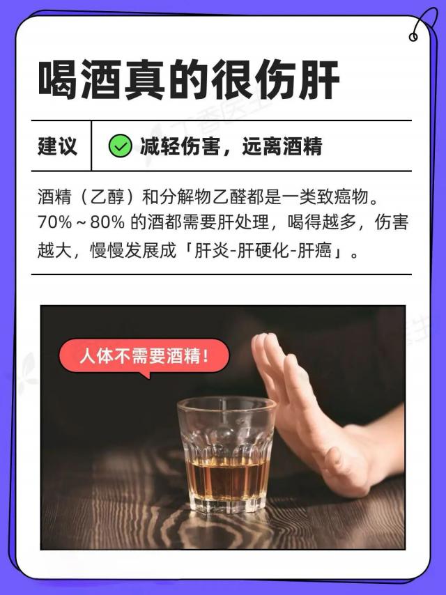 ? 喝酒傷肝是毋庸置疑的!酒精屬于I類致癌物,每一滴都對(duì)身體有害;