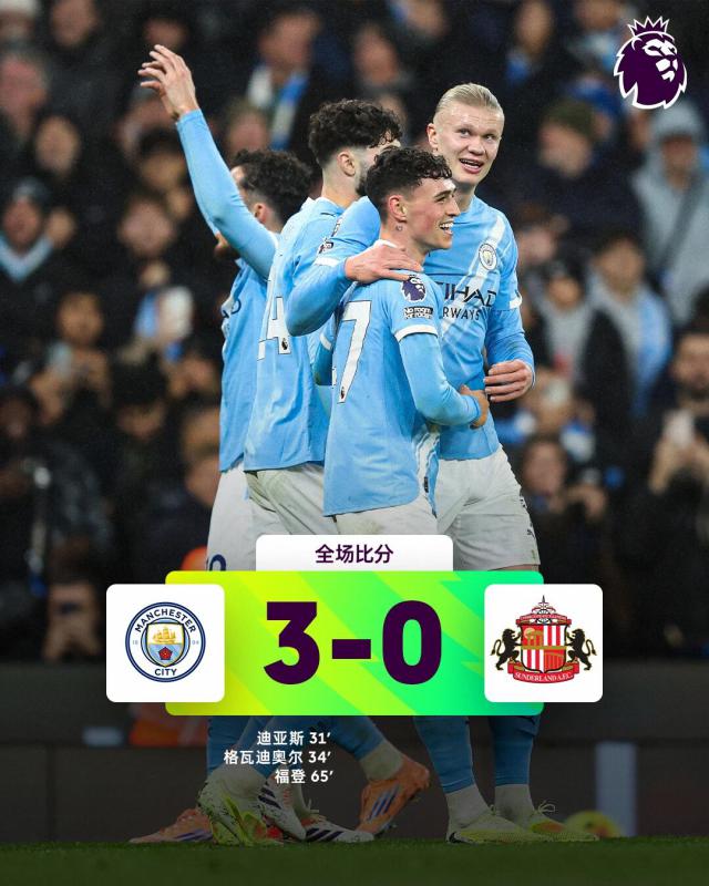 ?第31分鐘,迪亞斯在弧頂位置完成一腳遠射,皮球直入網(wǎng)窩,曼城1-0領(lǐng)先桑德蘭。