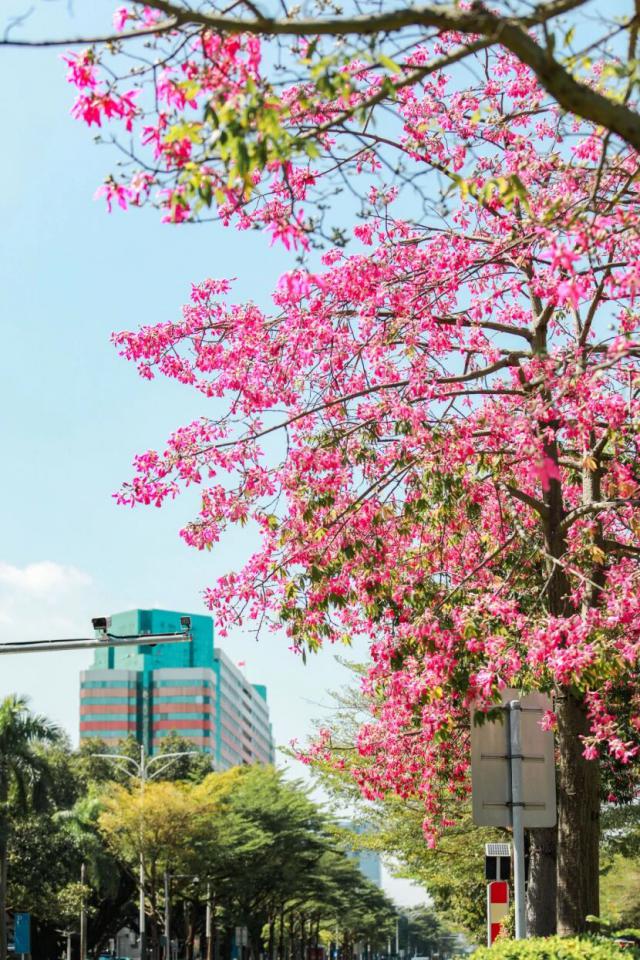 哈工大深圳校區(qū)的道路旁,粉云盈路,燦若霞蔚。這是深圳的溫柔,也是校園的浪漫。趁著好天氣,碼住這份賞花指南,和孩子一起循著花香,遇見屬于你的一樹浪漫吧~