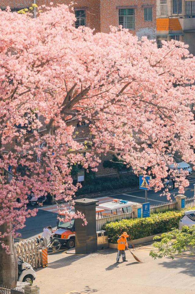 浪漫不止發(fā)生在公園,龍崗平湖的社區(qū)街角,藏著一棵“網(wǎng)紅異木棉”。