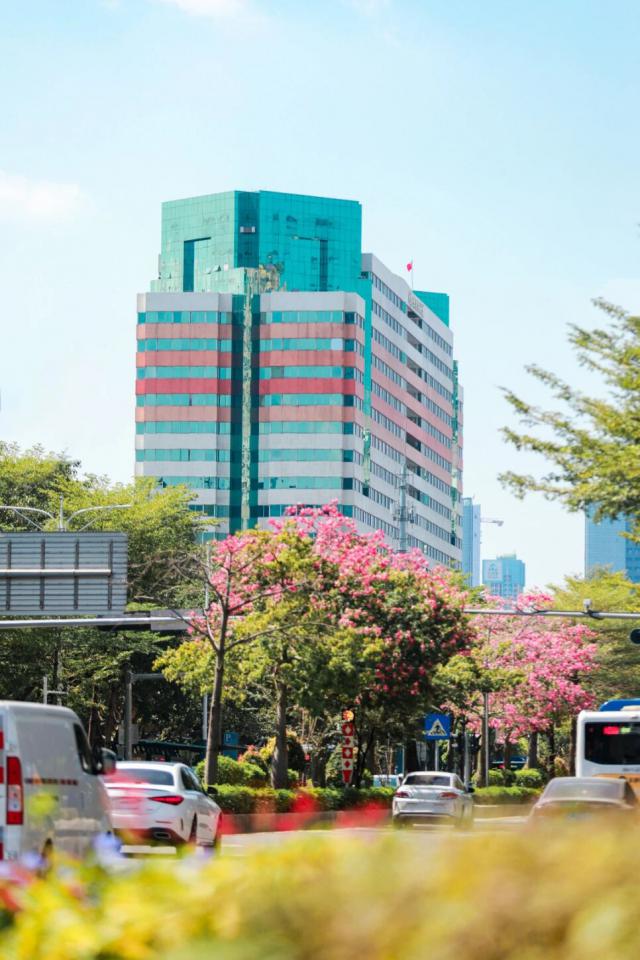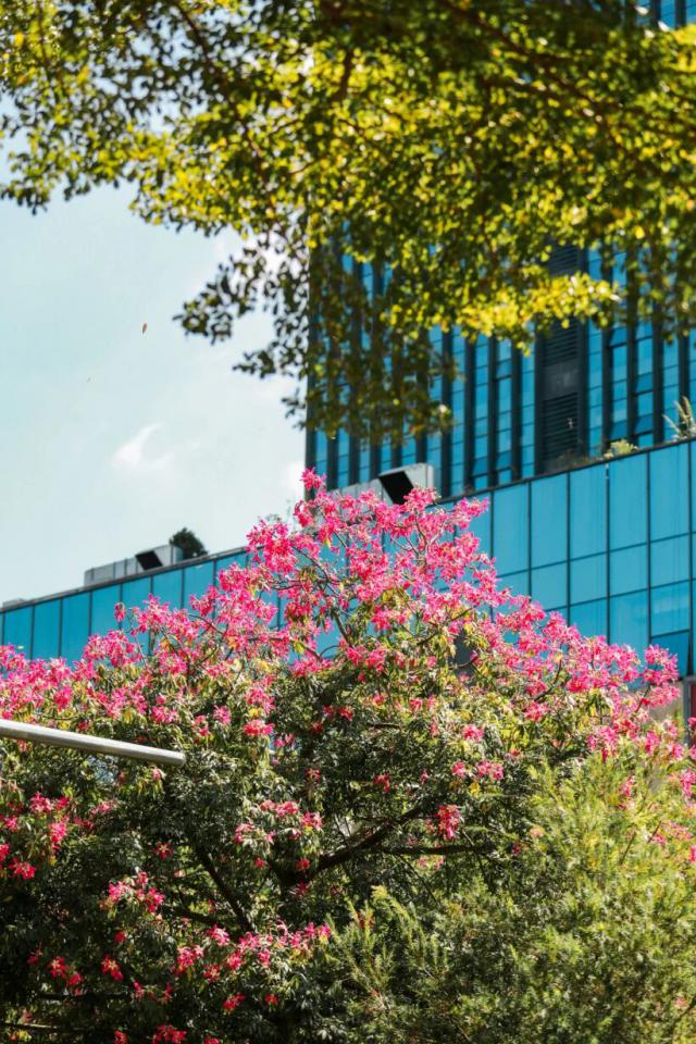 在海關大廈周邊,現(xiàn)代建筑與自然花木達成了一種美妙的平衡。異木棉的柔美點綴著玻璃幕墻的剛毅,為都市叢林注入了幾分詩意。
