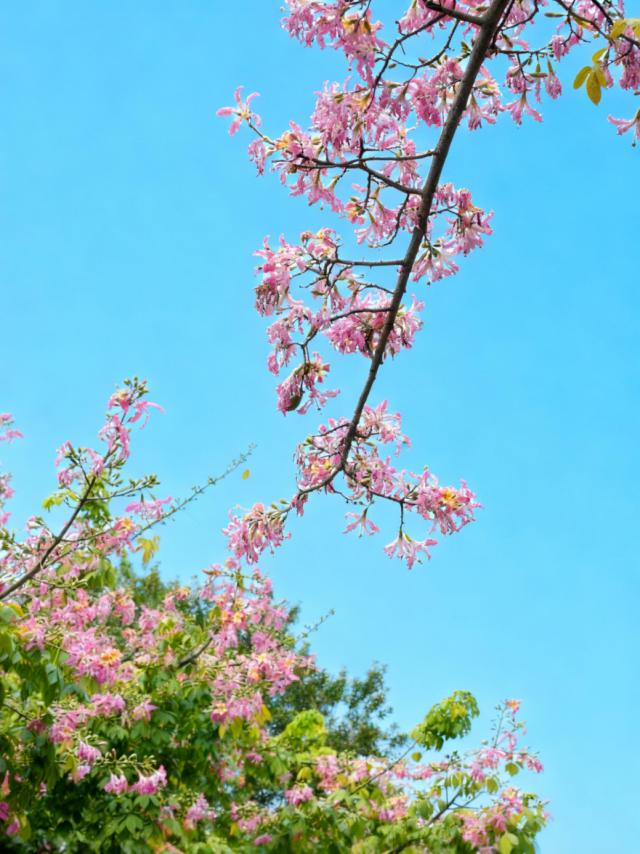 公園里這棵“異木棉樹王”,盛開時宛如綻放的“粉色煙花”,獨自撐起一片夢幻天空。