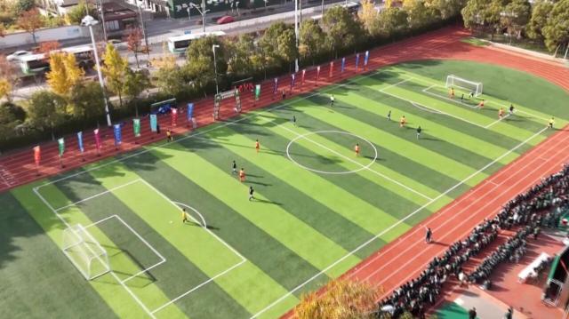 哨聲響起,少年們?nèi)珉x弦之箭般在綠茵場(chǎng)上奔跑。扎實(shí)的基本功、默契的配合,將足球運(yùn)動(dòng)的魅力展現(xiàn)得淋漓盡致。精準(zhǔn)傳球、靈活過(guò)人、果斷射門(mén),每一個(gè)精彩瞬間都凝聚著平日訓(xùn)練的汗水。暫時(shí)落后的隊(duì)伍毫不氣餒,全力追趕;場(chǎng)邊啦啦隊(duì)熱情助威,將氣氛推向高潮。齊賢學(xué)校的石晨熙分享道:“我們每周訓(xùn)練三到四次,在家也會(huì)顛球保持球感。”弘文學(xué)校的何立仁則心態(tài)從容:“我們不是足球特長(zhǎng)校,以參與為主,賽前教練分析了對(duì)手戰(zhàn)術(shù),布置了打法,盡力就好。”
