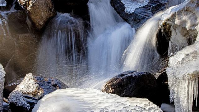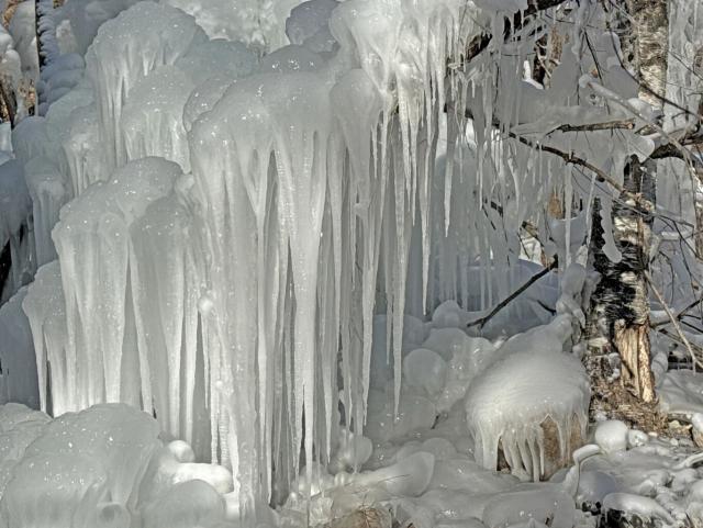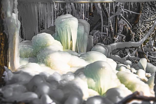 崖壁上凝結(jié)的冰掛澄澈透亮