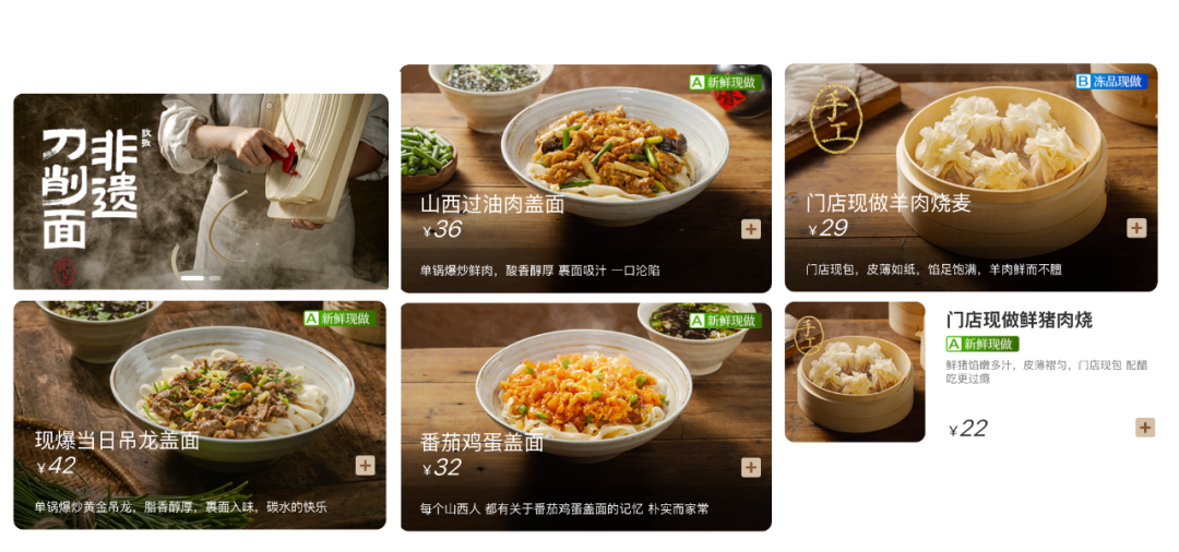 因此,九毛九山西菜構(gòu)建了刀削面+現(xiàn)做燒麥的模式,利用刀削面的表演屬性和燒麥制作的精細(xì)手工,提升顧客的體驗(yàn)感與價(jià)值感。
