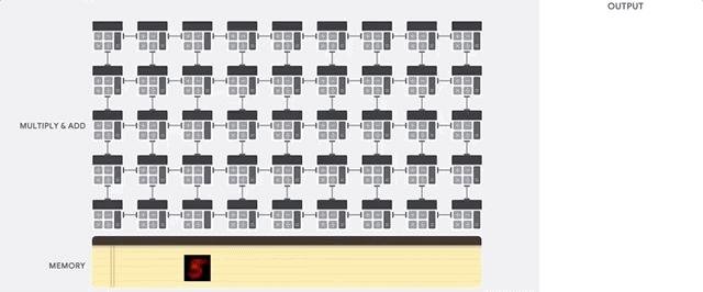 用上這一招,每個(gè)數(shù)據(jù)一旦開算,就會(huì)在密集排列的計(jì)算單元之間傳遞,沒(méi)用完不許回存儲(chǔ)單元。這樣,就不需要頻繁讀寫了。