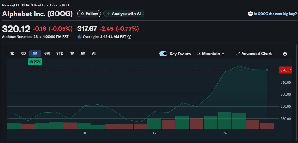 靠著性能炸裂的 Gemini 3,短短半個(gè)月,股價(jià)蹭蹭漲不說(shuō),還在競(jìng)技場(chǎng)內(nèi)拳打 OpenAI,競(jìng)技場(chǎng)外腳踢英偉達(dá)。